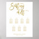 Wedding seating chart with with gold foil effect (faux, printed as an image) and customizable script text - you can add bride's and groom's name, wedding date and guest's names (7 tables with 8 guests each).