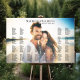 Elegant wedding seating chart featuring a simple design with your names in over your favourite photo. Just edit the tables and names. Available in printed format or as downloadable file.