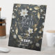 Elegant Black White and Gold Floral Wreath Wedding Seating Sign Templates - Your Glass For The Night, For Whatever Tastes Right. Yours To Keep, Let It Help You Find Your Seat!