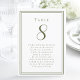 Our trendy wedding table number guest list features a template for the table number & list of guests at the table. Personalise elegant lettering and script with your guest's names & details in rustic olive green on a crisp white background. Perfect addition for a wedding, anniversary or large engagement party. The reverse side is a duplicate of the front allowing for easy viewing from both sides. Custom colour request accepted.