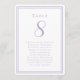 Our trendy wedding table number guest list features a clean template for the table number and the list of guests seated at that table. Personalize elegant lettering and script with your guests’ names and details in soft lavender on a crisp white background. A perfect addition for weddings, anniversaries, or large engagement parties. The reverse side mirrors the front for easy viewing from both directions. Custom color requests welcome.
