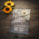 Modern Wedding Shower Celebration Invitation Cards Templates - Vintage Lace, Sunflower and String Lights on Rustic Wood Background.