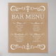 Rustic Bar Menu wedding sign in kraft paper background pattern.