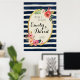 Welcome your wedding guests with this beautiful wedding welcome poster! Navy and ivory watercolor stripes, with flowers in shades of pink, blush, ivory and coral. Text, text color, and font are completely customizable to create the perfect sign for your wedding. ©Vanilla Lagoon 2016.