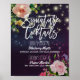 Signature Cocktail Drink Menu Wedding Decor Poster Templates - Elegant Script, Watercolor Floral Pink Roses and String Lights on Purple Sparkle Bokeh Lights Background.