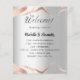 A wedding timeline, program. A stylish faux silver looking background decorated with rose gold marble veins. Personalise and add your names and the program. Black letters.