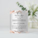 A wedding menu and evening timeline, program. A stylish faux silver looking background decorated with rose gold marble veins. Personalise and add your names, menu and the program. Black letters.
