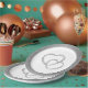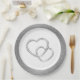 Wedding party paper plate shown in a Silver faux glitter print around the rim with a two hearts print design in the centre.
