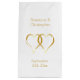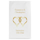 Wedding favour gift bag gold coloured hearts design. Customise this gold coloured wedding favour gift bag with your wedding details. Should you require any help with customising then contact us through the link on this page. Gold coloured hearts design personalised wedding favour gift bag