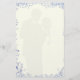 Elegant wedding stationery design featuring a soft silouhette of dancing newlyweds in the background and a decorative floral border. Comes in white background or a light blue background with all matching wedding set products.