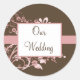 Our Wedding stickers with a chocolate brown and pink floral swirl background. Get the matching postage to complete the look. Also available with monograms, or the names of the bride & groom.
