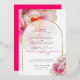 WEDDING | Modern text fits nicely inside this beautiful sheer white gold edged arch frame that shows the underlying fantasy bright fuchsia scarlet peony flower edged in gold - original artwork © by WhimsicalArtwork™.