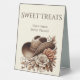 Enhance your wedding reception decor with these Country Western Sweet treats tabletop sign. This beautifully designed sign will add a touch of country charm to your sweet table featuring a luxury Cowgirl Hat with flowers. Explore the Collection for a beautifully country-themed wedding.