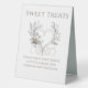 Enhance your wedding reception decor with this modern and elegant Tabletop Sweet Treats Sign, featuring Modern White Flowers with a Heart. This beautifully designed sign seamlessly blends with your theme, adding a touch of elegance to your table. Explore the Collection for a beautifully modern-themed wedding.