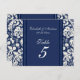 Elegant and classic dark navy blue and off white cream wedding table number cards with classic floral damask pattern. Customise these cards to create custom table number cards for each table at your wedding. Add your names and wedding date. Pattern available in a wide range of matching wedding products.