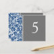 Elegant and classic dark navy blue, grey and white wedding table number cards with classic and chic vintage floral damask pattern. Customise these cards to create custom table number cards for each table at your wedding. Pattern available in a wide range of matching wedding products.