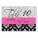 Wedding Table Number Cards Damask Hot Pink. Fully Customisable Table Number Cards for Weddings. Customise with your names and table number. Customise with one table number. Then place your order of "one". Then change the table number to the next number and order one copy of that card. One card for each table number, so that for 20 tables you will have 20 different orders in your cart with numbers 1 to 20. Design by Elke Clarke ©2011. Graphics licensed.