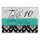 Wedding Table Number Cards Damask Turquoise