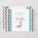 Elegant and modern teal blue, dark charcoal grey and white wedding table number cards with fun retro chevron zigzags stripes pattern. Customise these cards to create custom table number cards for each table at your wedding. Add your names and wedding date. Pattern available in a wide range of matching wedding products.