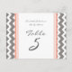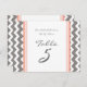 Elegant and modern peach orange pink, dark charcoal grey and white wedding table number cards with fun retro chevron zigzags stripes pattern. Customise these cards to create custom table number cards for each table at your wedding. Add your names and wedding date. Pattern available in a wide range of matching wedding products.
