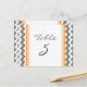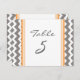 Elegant and modern tangerine orange, dark charcoal grey and white wedding table number cards with retro and fun chevron zigzags pattern. Customise these cards to create custom table number cards for each table at your wedding. Pattern available in a wide range of matching wedding products.