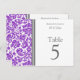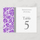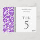 Elegant and modern bright purple, grey and white wedding table number cards with chic and classic floral damask vintage pattern. Customise these cards to create custom table number cards for each table at your wedding. Add your names and wedding date. Pattern available in a wide range of matching wedding products.