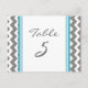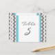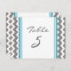 Elegant and modern teal blue, dark charcoal grey and white wedding table number cards with retro and fun chevron zigzags pattern. Customise these cards to create custom table number cards for each table at your wedding. Pattern available in a wide range of matching wedding products.