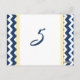 Elegant and classic bright lemon yellow, dark navy blue and white wedding table number cards with retro and fun chevron zigzags stripes pattern. Customise these cards to create custom table number cards for each table at your wedding. Pattern available in a wide range of matching wedding products.