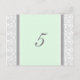 Elegant and classic light pastel mint green, grey and white wedding table number cards with romantic floral damask vintage pattern. Customise these cards to create custom table number cards for each table at your wedding. Pattern available in a wide range of matching wedding products.