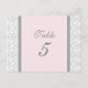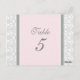 Elegant and classic light pastel blush pink, grey and white wedding table number cards with romantic floral damask vintage pattern. Customise these cards to create custom table number cards for each table at your wedding. Pattern available in a wide range of matching wedding products.