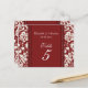 Elegant and classic red and off white cream wedding table number cards with classic floral damask pattern. Customise these cards to create custom table number cards for each table at your wedding. Add your names and wedding date. Pattern available in a wide range of matching wedding products.