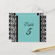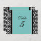 Elegant and classic turquoise blue, black and white wedding table number cards with stylish floral damask pattern. Customise these cards to create custom table number cards for each table at your wedding. Pattern available in a wide range of matching wedding products.
