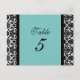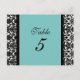 Wedding Table Number Cards Teal Damask