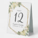 Chic, elegant and formal wedding table number cards feature romantic wedding roses in watercolor vanilla white with hints of blush pink displayed in leafy greenery on a crisp white background. A sparkling golden colour geometric crystal-shaped frame provides a trendy touch. Traditional, classic wording provides timeless sophistication. Personalise wedding details for your guests in elegant charcoal grey lettering and script. The back of the card is a duplicate of the front. Feel free to contact me at invitationsuites@gmail.com if you have questions regarding this or any of our designs.