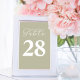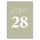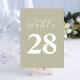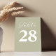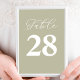This design features a wedding table number card with an elegant, simple, calligraphy script, a minimalist, simple typography, perfect for a wedding reception or any event with a sage green solid colour.
