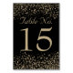 Elegant champagne gold colour and black table number cards for your elegant wedding- Faux champagne gold confetti and antique gold glitter dots are scattered across the top and bottom edges. Coordinating colour letters read 'Table No.' with customised numeral against black background to really make the dots pop. Identical on other side. Customise each table number separately and add to your Zazzle shopping cart.