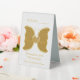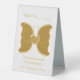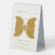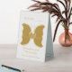 Wedding table number gold coloured butterfly heart design. Customise this gold coloured wedding table number with your wedding details. Should you require any help with customising then contact us through the link on this page. Gold coloured butterfly heart design personalised wedding table number