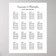 A simple wedding guest seating chart poster for sixteen tables with six guests each. You may change the colours on it if you desire. Click "customise", then on the right, click on the text you want to change. The font colours are below the poster, and the background is below the right hand side.