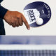 Wedding game face at the ready for the Team Bride vs Team Groom Ping Pong Match. You can add your wedding year to this navy blue tuxedo-themed table tennis paddle.