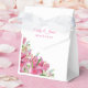 Shown here is the tent style favour box. This box coordinates with the temple wedding invitation and reception invitation. Has pretty printed on Pink lilies on the angle of the front lower edge of this favour box. Personalised names of the newlyweds across the top flap. To personalise the names, click the "unfolded" button after clicking customise button. Customise this item to your desires.