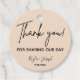 Simple calligraphic Wedding Party Favour tags with 'Thank you for sharing our Day!' lettering, couple's first names and the date of event (editable). Different background colour options available.