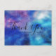 Classic wedding thank you post card template features a blue confetti covered watercolour on the front, and a customisable message at the back. You can personalise it with the customise it button. Send out your wedding thank you message as newly weds to your friends and family using this beautifully, simple thank you wedding photo postcard with the words "thank you" written in a white handwriting script text overlay.