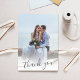 This design features a wedding, thank you card, with a 2 photo template, minimalist, typography, calligraphy script, with a custom message, and a simple and elegant style.
