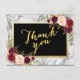 Elegant burgundy and floral watercolor and faux gold foil script with black and grey marble Wedding Thank You Postcard. Elke Clarke © Other colours available at www.zazzle.com/monogramgallery. A simple, yet versatile, hand lettered script "Thank You" for weddings or other special occasions such as rehearsal dinners, couple's showers, wedding anniversary celebrations. Gold foil is a printed photo effect.