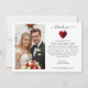 Share your gratitude and your memories with our Red Roses in the Shape of a Heart thank you card. This design perfectly captures the warmth and romance of your modern and elegant celebration. Include your favourite wedding photo, a heartfelt message, and your website so that your guests can relive the magic. It’s a heartfelt way to say thank you while sharing the moments that made your day unforgettable. Perfect for modern weddings, this card pairs beautifully with the entire Red Roses Wedding Collection for a cohesive and meaningful finish to your celebration.