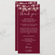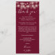 An elegant burgundy wedding celebration thank you reception card featuring pretty string lights. Personalised with your special thank you message set in stylish typography. A special keepsake thank you for your guests. Designed by Thisisnotme©
