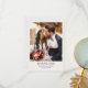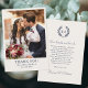 An elegant thank you card featuring a custom photo, and a simple laurel wreath framing the couple's initials. Inspired by 1920s wedding invitations, it blends classic formality with modern flair, using a traditional serif font, vintage calligraphy script and a clean arrangement. Personalise the template with the couple's names, monogram, ceremony date, and personal message — all the text can be customised. You can also customise the background colour using the design editor tool. Printed colours: very dark navy blue, and off-white, ivory cream. Shop the collection for matching stationery and supplies for sale online!