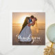 Send out your wedding thank you message as newly weds to your friends and family using this elegant,personalised, simple thank you wedding photo Square card with the words "thank you" written in a classy black script text. Replace the sample photo with one of your own wedding photo.
