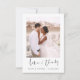 Wedding Thank You Cards that have a photo on the front and back. The Thank you cards contain a modern hand lettered cursive script typography that are elegant, simple and modern to use after you wedding day celebration.
