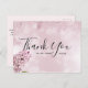 Classic wedding thank you post card template features a pink flower design on the front, and a customisable message at the back. You can personalise it with the customise it button. Send out your wedding thank you message as newly weds to your friends and family using this beautifully, simple thank you wedding photo postcard with the words "thank you" written in a white handwriting script text overlay.